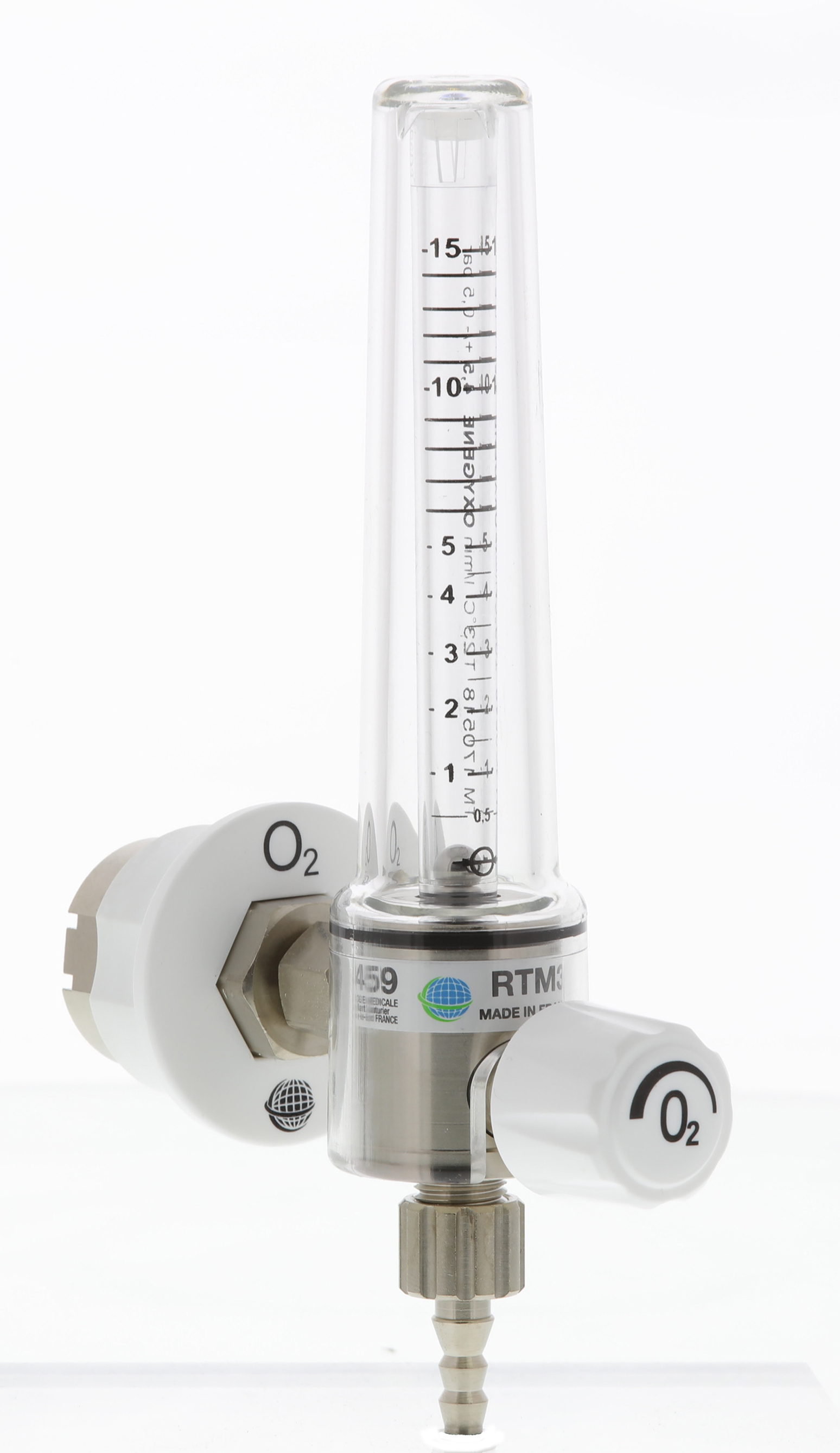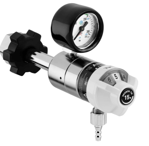 REGSON TM2 15 l/min à écrou AFNOR pour grande bouteille d’oxygène avec prise rapide AFNOR et tétine de sortie
